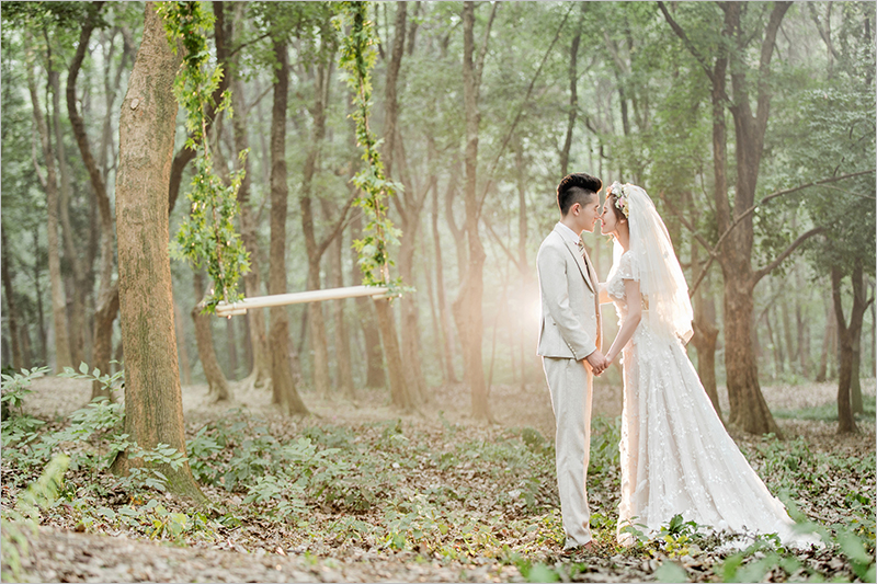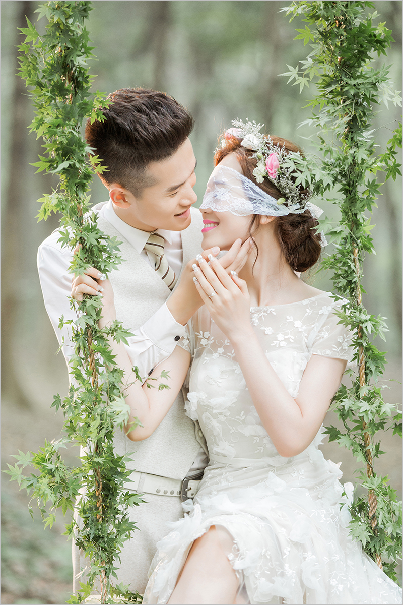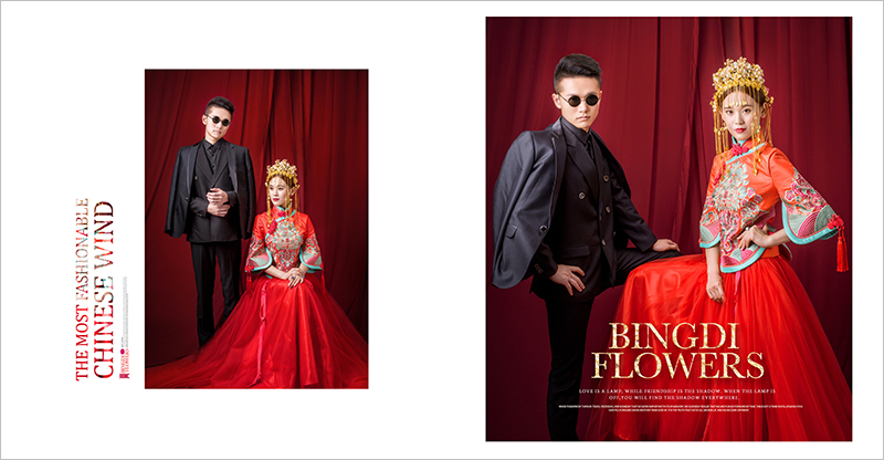 还尝试拍摄了一组中国风式的婚纱照,效果还不错;